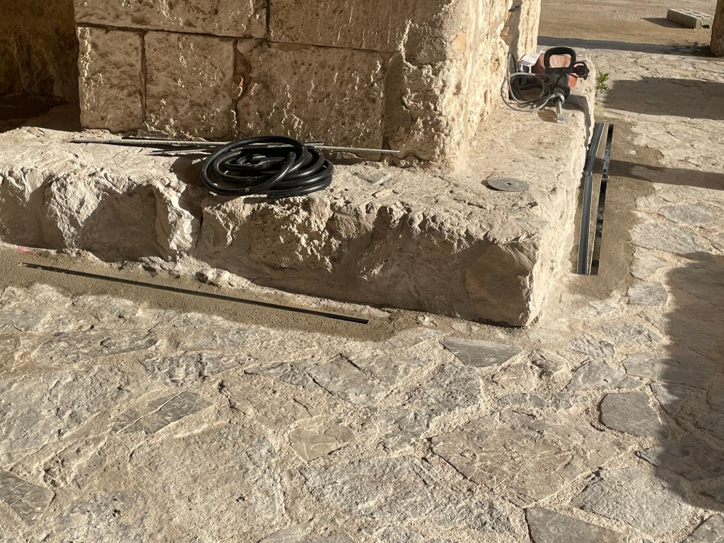 A mitjan octubre el conjunt ja presentava un aspecte diferent, amb les noves faroles, senyalítica del carrer que va a la Placeta del Pou d’en Rebassa, tancament de l’entrada al camp d’en Pineta amb un piló metàl·lic, i el nou paviment. Aquesta setmana s’han iniciat les obres d’il·luminació de la porxada que inclou el pou i diverses piques.