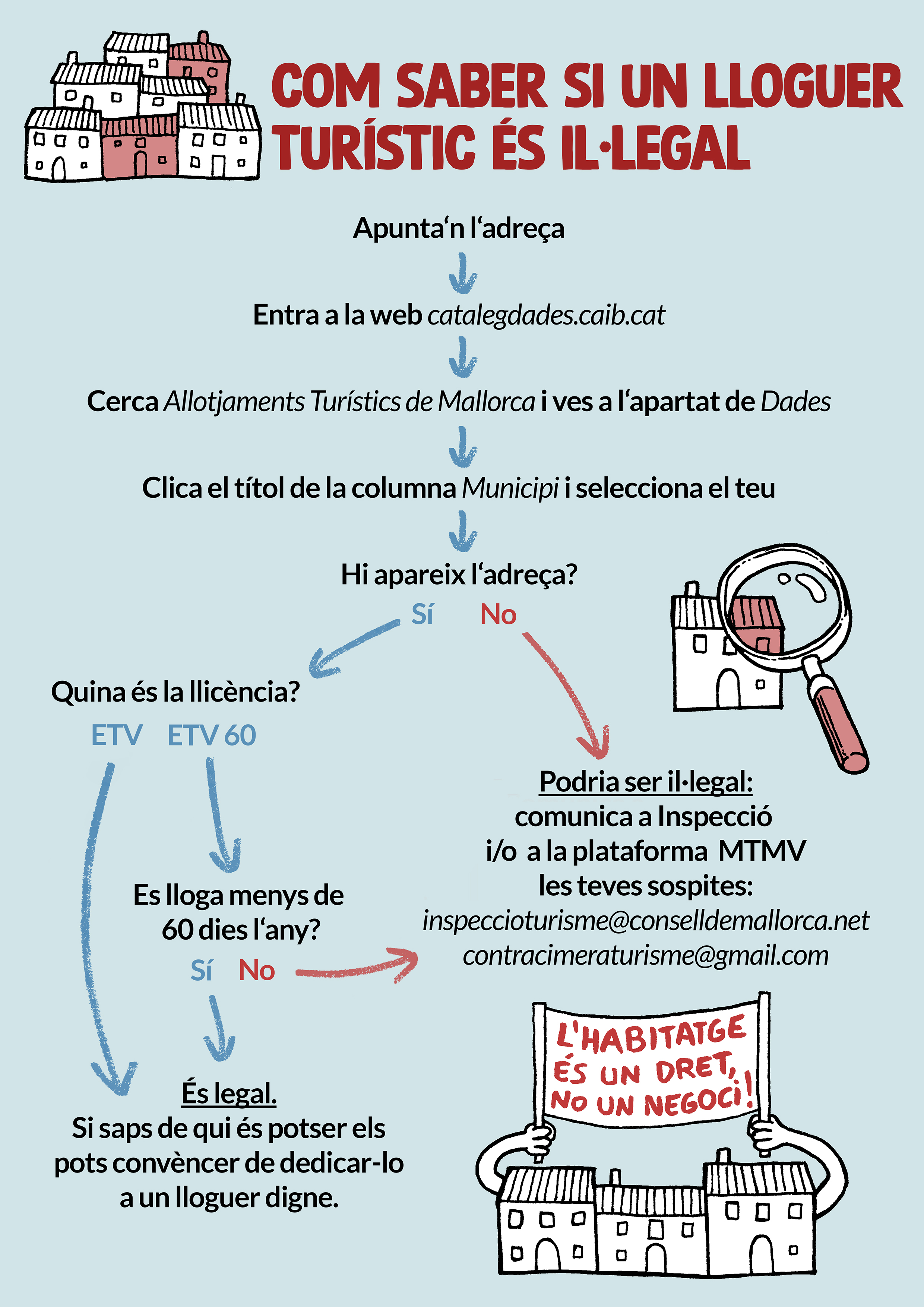 A la vegada, el col·lectiu adjunt la següent infografia per tal de detectar un lloguer turístic il·legal:
