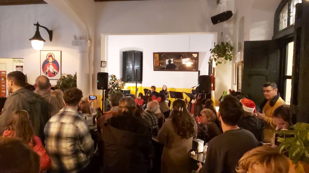 Ahir, dilluns, alguns alumnes de cant i de combo de l’Espai Musical Sineu, acompanyats per professors, varen oferir un repertori de cançons a Sa Central, en el marc de les Festes de Nadal.