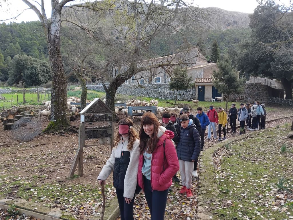 Un altra grup ha fet el manteniment de l’itinerari sensorial pera invidents, de les cases de Binifaldó fins a l'”alzina d’en Pere”. Allà donaren oli a la fusta, llevaren males herbes i feren una ecoauditoria. Per a provar-lo s’embenaren els ulls i simularen l’itinerari d’una persona invident amb bastó.