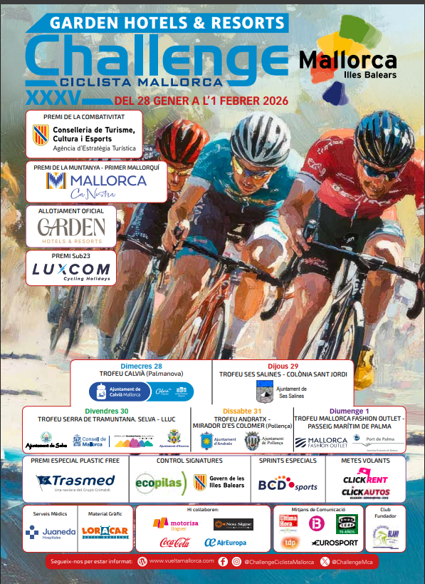 Un any més, la Challenge Ciclista Mallorca torna a marcar l’inici de la temporada ciclista professional a Europa, amb la celebració de la seva XXXV edició entre els dies 28 de gener i 1 de febrer. Aquest dimecres comença la primera etapa.