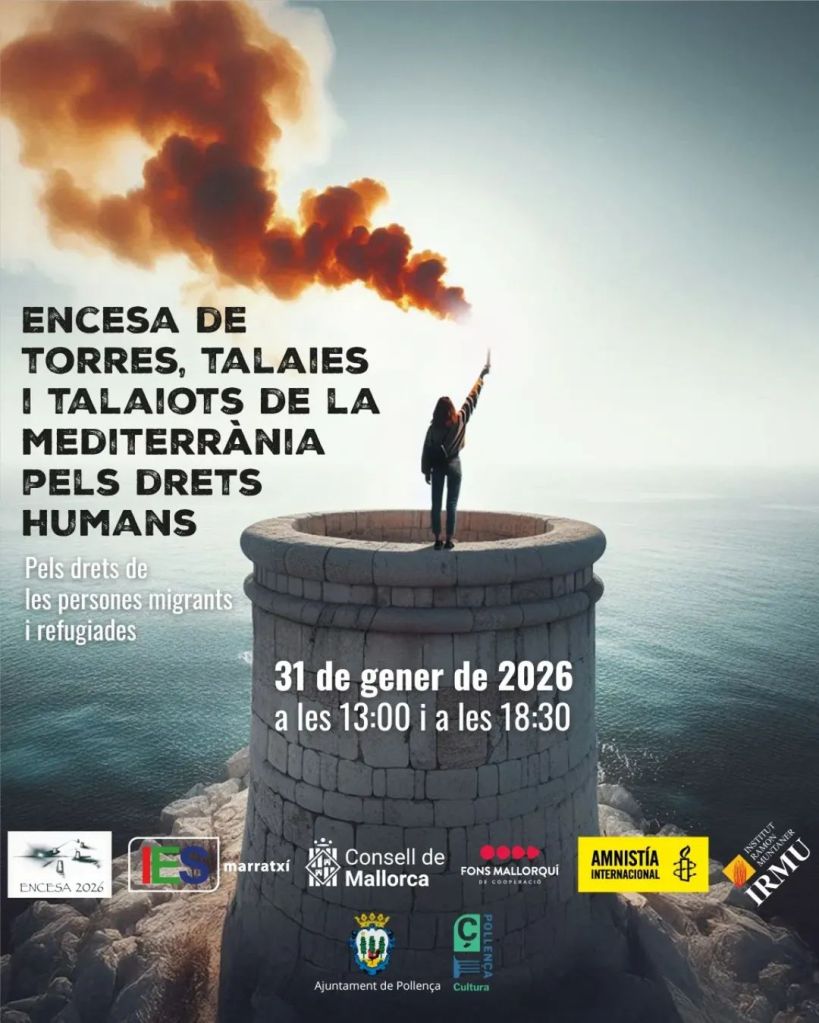 Aquest dissabte dia 31 celebraran l’encesa de torres pels Drets Humans. L’encesa es fa des del primer any (enguany ja en farà deu) a les torres de defensa de la costa mallorquina. Actualment s’hi han afegit altres punts elevats com el campanar de Sineu i localitats de la península. La primera edició fou promoguda per l’IES Marratxí i la Societat Balear de Matemàtiques. Actualment, hi participen el Fons Mallorquí de Cooperació, el Consell de Mallorca, Amnistia Internacional, Institut Ramon Muntaner i diferents entitats locals. L’encesa es fa en memòria de les persones que travessen la mar per emigrar de ca seva seguint la promesa d’un futur millor arriscant la vida.