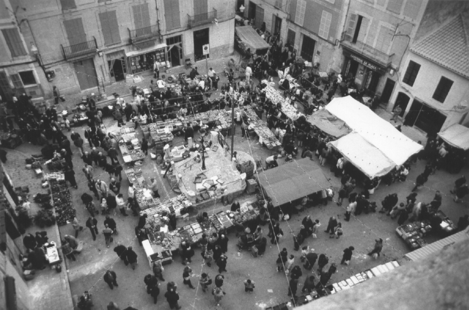 paper ordenador. L’aparició reiterada de centralitats provisionals (parades de dimecres o la barra el dia de Sa Moguda, per exemple) evidencia una necessitat estructural. Un element fix amb entitat (la font existent és una anècdota) a més d’organitzar l’espai aporta identitat, coherència i llegibilitat, neutralitza jerarquies entre façanes, evita privilegis temporals i garanteix que l’espai funcioni com un lloc públic equilibrat.