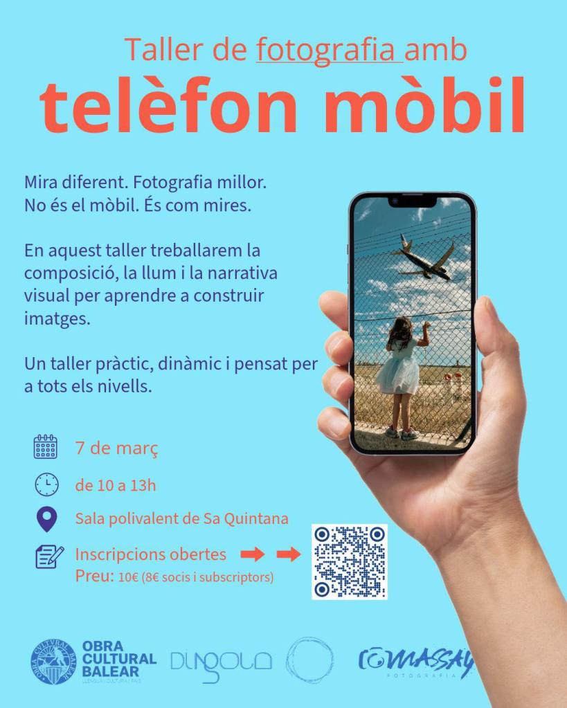 Per aquest dissabte matí, DíNGOLA i l’Obra Cultural Balear, juntament amb MassayFotografia, han organitzat un curs-taller per treure partit al mòbil i usar-lo com una veritable càmera fotogràfica.