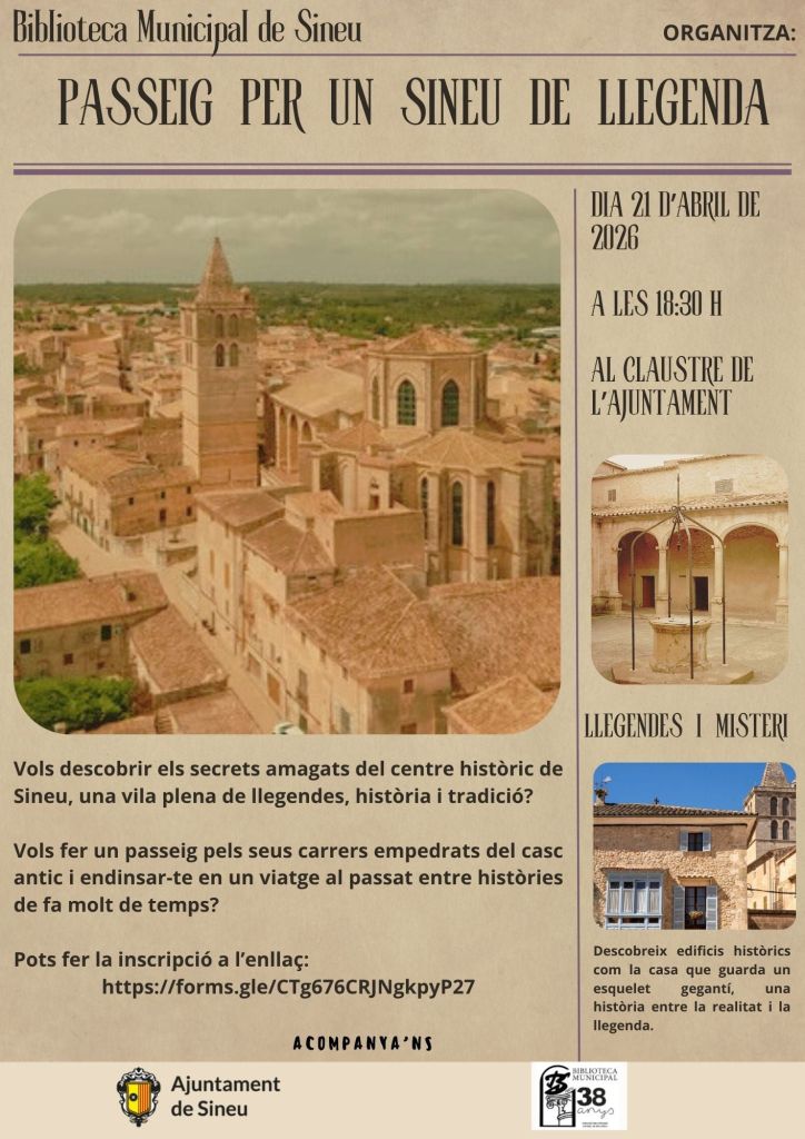 El programa també inclou activitats que connecten amb la identitat local, com el passeig “Sineu de llegenda”, una ruta pel centre històric que permetrà als participants endinsar-se en històries, misteris i llegendes sineueres. Això serà dimarts, 21 d’abril.