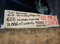 Pengen pancartes contra la macrogranja el dia abans de que Sineu rebi milers de visitants