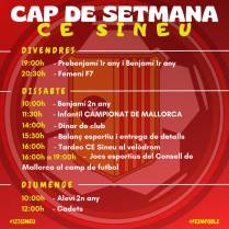 Avui, dissabte, el C.E. Sineu ha organitzat la festa de final de temporada, amb tota una programació d’actes al llarg del dia. En el cartell teniu tota aquesta programació.