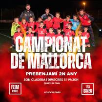 L’equip pre-benjamí de 2n any del C.E. Sineu disputa, a partir d’avui horabaixa, el Campionat de Mallorca de 1a Regional. La primera eliminatòria de quarts de final es disputarà avui, dimecres, a les 19,30 h al camp de Son Cladera.
