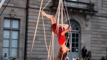 L’artista italiana de circ Clara Larcher, que actualment resideix a Catalunya, fa feina aquests dies a la Sala Gran del C.IN.E de Sineu, preparant Araké, el seu projecte més recent. Araké és un món fet de cordes, un cos supès que resol els enigmes