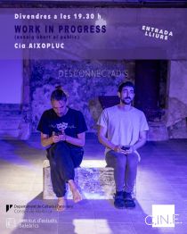 La companyia mallorquina Aixopluc assaja aquests dies a la Sala Caldera de l’antic cine en en el seu primer projecte, Desconnectadis. En aquesta peça, Àngel Santana i Xavi Vila volen reflexionar sobre la la comunicació humana actual, des de la