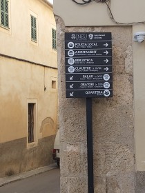 Molts dels residents a Sineu no cal que ens guiem per aquest cartell per arribar als indrets que assenyala, però si no sou del poble, cap on aniríeu si voleu anar al palau, a l’oratori (l’Hospici) o a la quartera