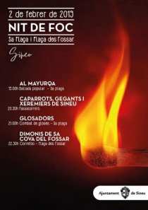 El passat dissabte 2 de febrer es va celebrar una nit dedicada a la cultura, sota el lema de Nit de Foc, amb la participació d’Al-Mayurqa, els Glosadors de Mallorca, els Xeremiers de Sineu i els Caparrots de Sineu, i