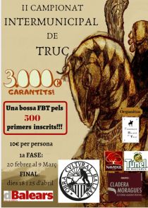 Aquest dijous comença la 1a fase del II Campionat Intermunicipal de Truc, organitzat per la Federació Balear de Truc. El bar ES23 és un dels bars de Mallorca que participa en la 1a fase d’aquest campionat. Les parelles interessades s’han
