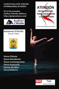 Aquest cap de setmana, a l’Auditori d’Alcúdia, s’ha disputat la X Edició Gala Jove de Dansa, que és un concurs internacional organitzat per Illesdansa Jove Ballet, amb la col·laboració de l’àrea de Cultura de l’Ajuntament d’Alcúdia. És un concurs dirigit