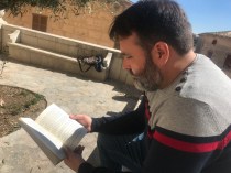 Arriba al Bar Sabina, saluda un grapat de taules abans de seure’s on li farem l’entrevista, i demana un cafè. Du una bossa de roba amb un exemplar del seu llibre. En Rafel té un caràcter tranquil i afable. Xerra