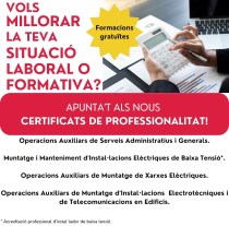L’IES Sineu ha posat en marxa el procediment per a l’obtenció de quatre certificats de pofessionalitat que són formacions totalment gratuïtes i proporcionen acreditacions oficials de: A cada un dels cartells trobareu la informació bàsica. Per més informació podeu enviar