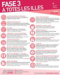 Dilluns els mallorquins, menorquins i eivissencs entram en fase 3 de capavallada. La quarta i darrera fase abans de la “nova normalitat” o anormalitat postpandèmica. És previst, de nou, que duri dues setmanes, segons l’evolució que faci el nombre de