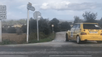 Aquest és el cotxe de l’equip del pilot sineuer Biel Gacies i la copilot Aurea Ramis, passant fa una estona per l’encreuament de la carretera Llubí – Santa Margalida amb la de Muro. Mira aquí i aquí les notícies de