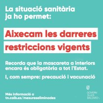 A partir de demà, primer de març, el Govern de les Illes Balears deroga totes les mesures restrictives per a la contenció de la covid excepte la de l’ús de màscara en interiors.