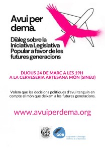 Aquest dijous dia 24, el GOB serà a Sineu per a parlar sobre el projecte d’iniciativa legislativa popular que impulsa sota la campanya “Avui per demà” http://www.avuiperdema.org. Des de les acaballes de l’any 2021, el GOB treballa per la presentació