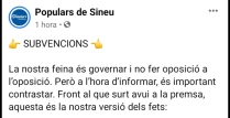 El comunicat de premsa de Gent per Sineu publicat ahir per Diario de Mallorca, Última Hora i el nostre portal de dingola.net: https://dingola.net/2020/10/14/gent-per-sineu-considera-que-lequip-de-govern-desaprofita-subvencions-per-manca-dinteres/ ha estat mal rebut pel principal partit del govern municipal, el PP, que en el seu perfil