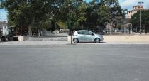 Aquest cotxe, conduït per dos turistes estrangers, aquest matí ha travessat el recinte tancat de la plaça des Fossar. El cotxe ha entrat dins el recinte, ha circulat pel passeig peatonal que passa per devora el parc infantil, i ha