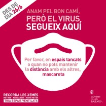 “A partir de demà, ja no serà obligatori dur la mascareta a l’exterior. Però no hem de baixar la guàrdia: el virus continua aquí. En espais tancats o quan no puguis mantenir la distància, protegeix-te, protegeix els altres”. Aquest és
