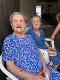 Magdalena Jaume Gatzella (també coneguda com a Foradina) complí ahir 100 anys i ho celebrà amb una festa davant ca seva, al Pou de na Morera. Un bon grapat de familiars, amics i coneguts volgueren brufar amb ella aquesta insòlita i